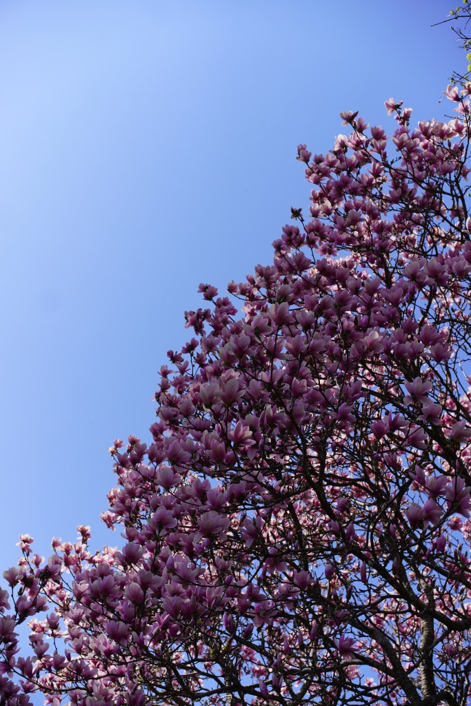 Spring is beginning to bloom super beautifully and I was itching to be outside for a bit. Yesterday I began to untangle the overgrown grape vines on my grandparents’ grape tree. While doing so I noticed the beauty of the cherry blossoms behind it. I always see them every year but this time around something in me really wants to appreciate the flowers a bit more. Since the last time I saw them I’ve done a ton of growth too, they wont ever look the same.